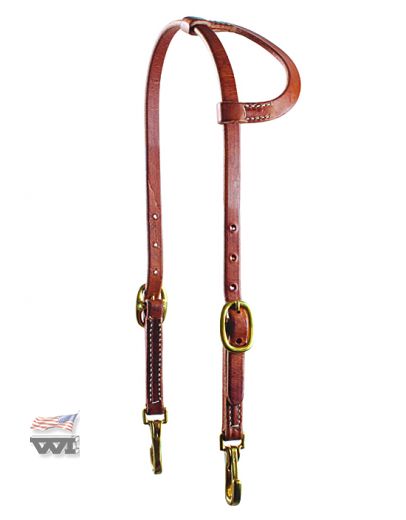 Einohr Kopfstück aus Harness-Leder mit Messing-Schnalle und Quick Snaps